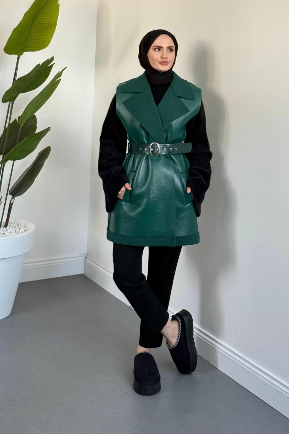 Amarila Deri Görünümlü Yelek Yeşil (6237)