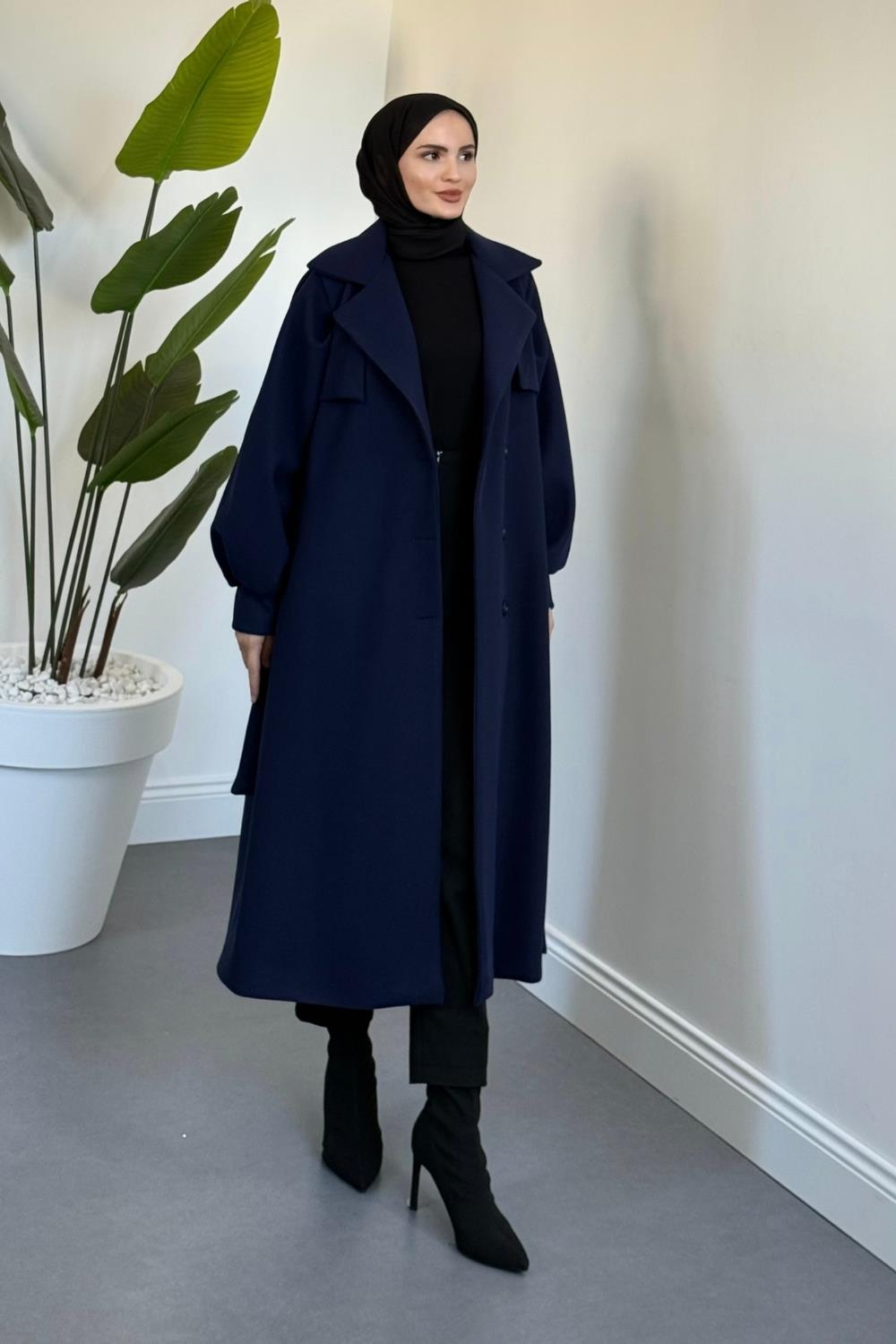 Areson Cepkenli Astarlı Kaban Lacivert (6253)