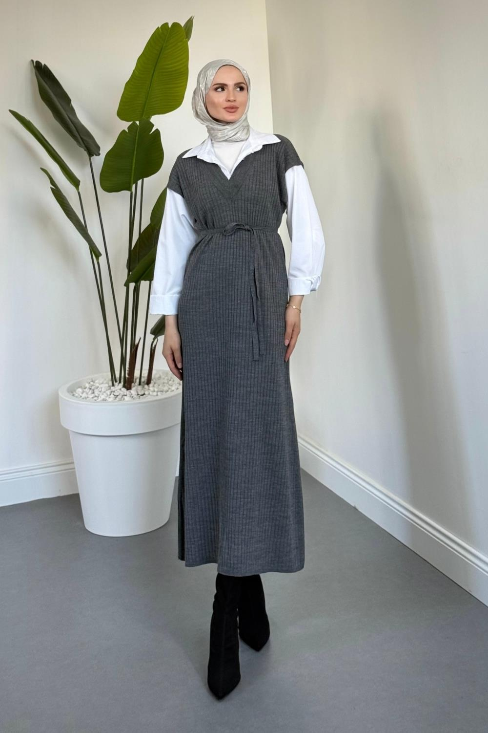 Edoril Triko Gömlek Elbise Gri (25120)