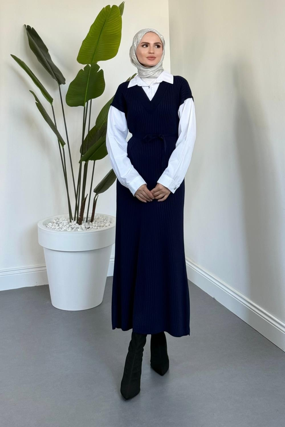 Edoril Triko Gömlek Elbise Lacivert (25120)