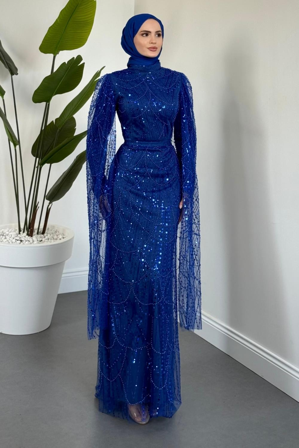 ÜRÜN ADI: Eloria Pelerinli Boncuk İşlemeli Abiye Sax
