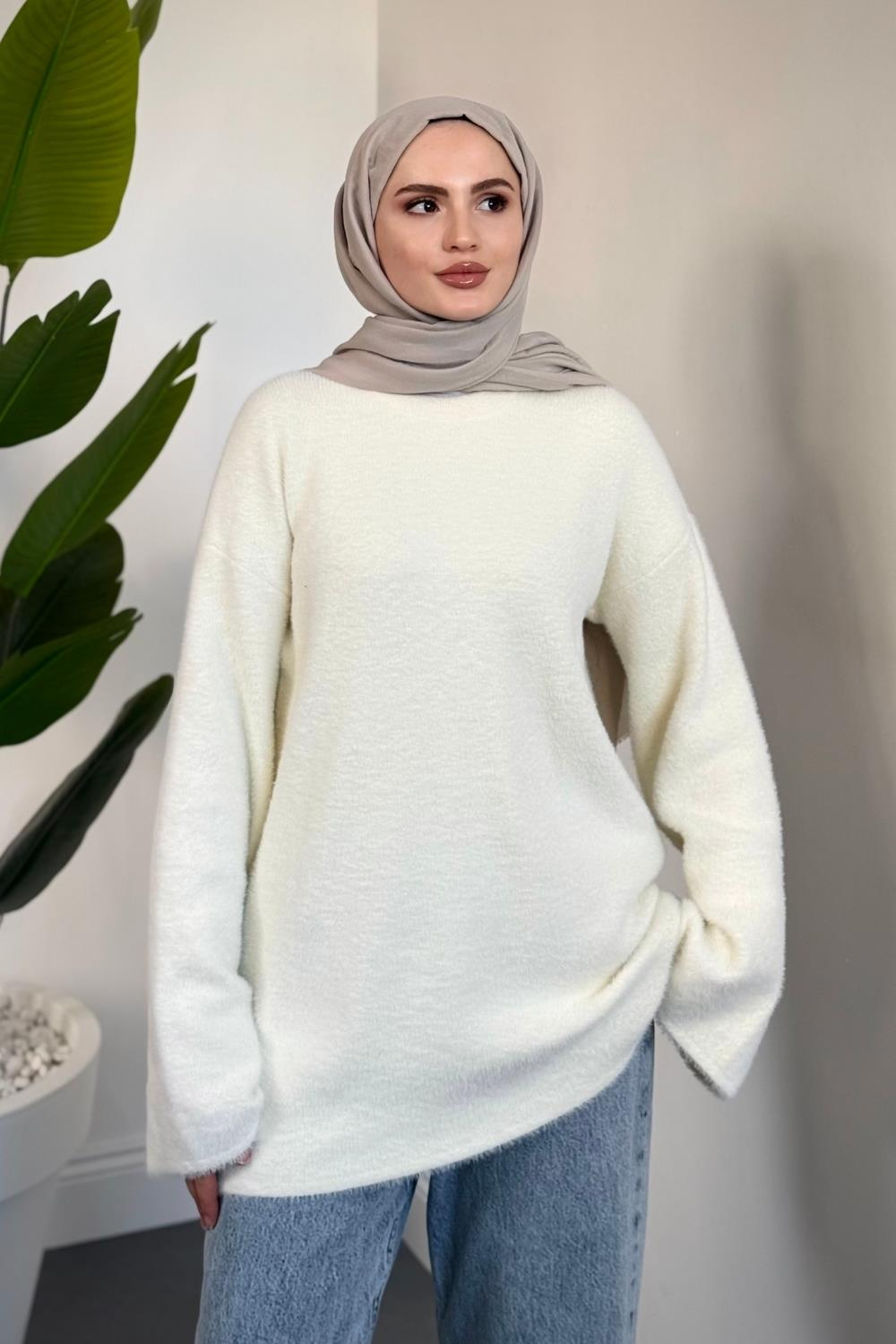 Fiorina İspanyol Kol Kedi Sakal Kazak Krem (25440)