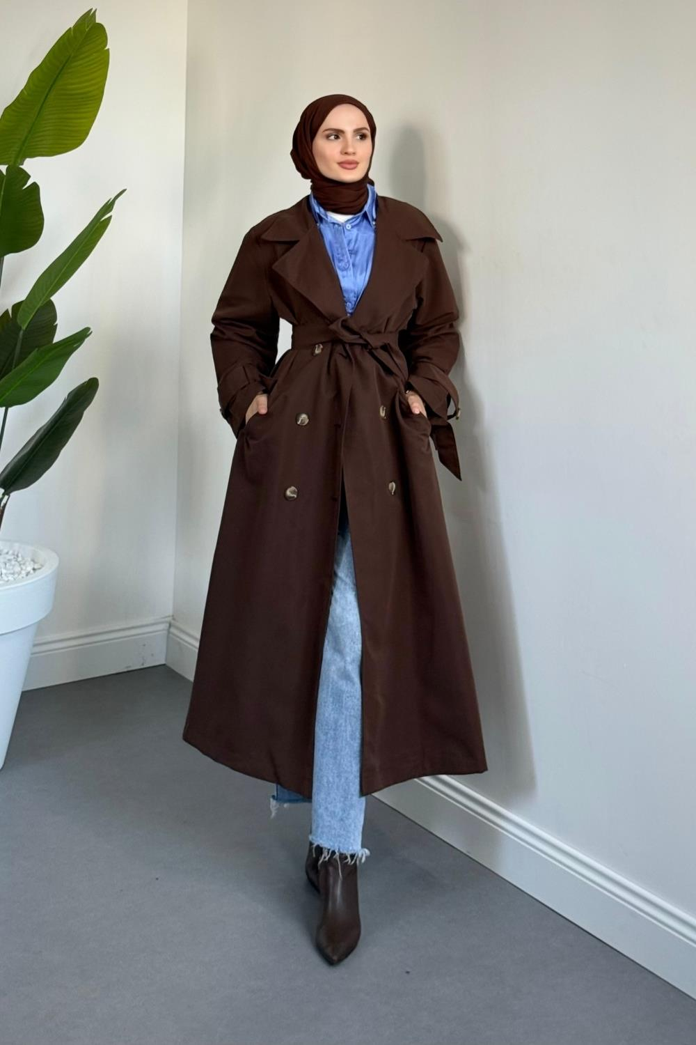 Helora Arka A Pİle Düğmeli Trençkot Kahverengi (5979)