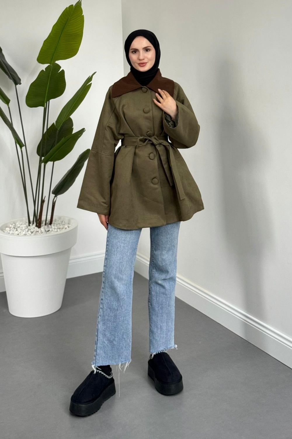 Jany Düğmeli Kuşaklı Kaban Haki (9351)