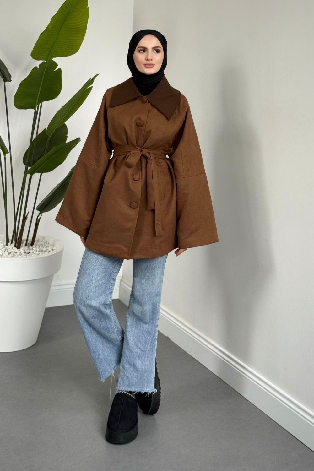 Jany Düğmeli Kuşaklı Kaban Taba Jany Düğmeli Kuşaklı Kaban Kahverengi Jany Düğmeli Kuşaklı Kaban Vizon Jany Düğmeli Kuşaklı Kaban Haki