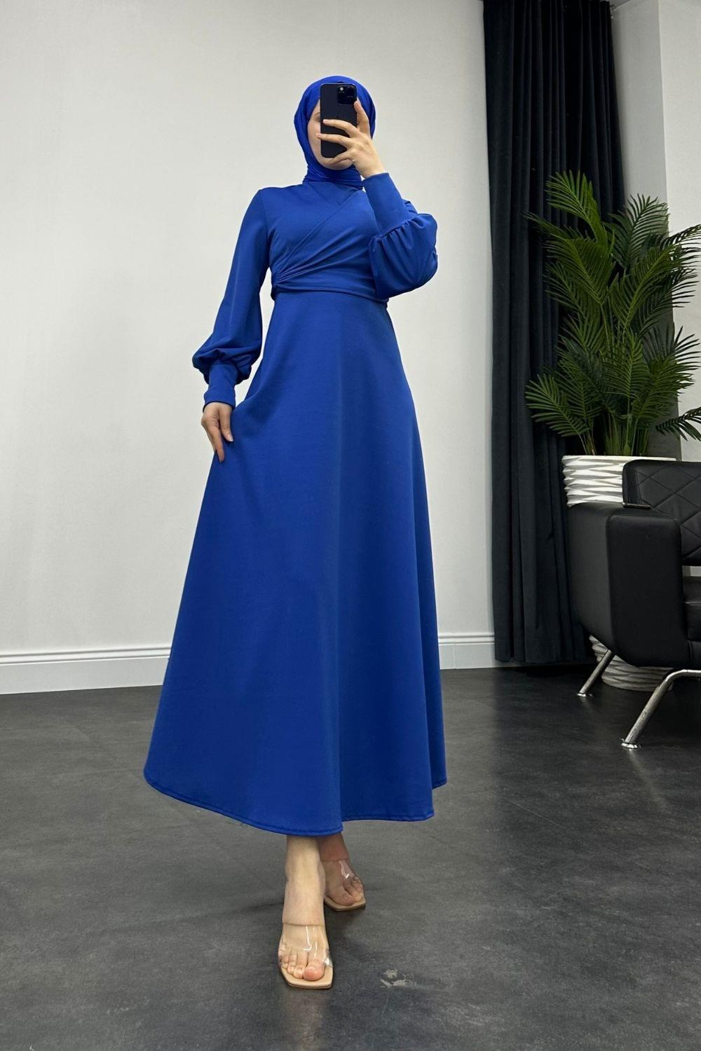 Jasmin Drapeli Elbise Saks Mavisi (4545)
