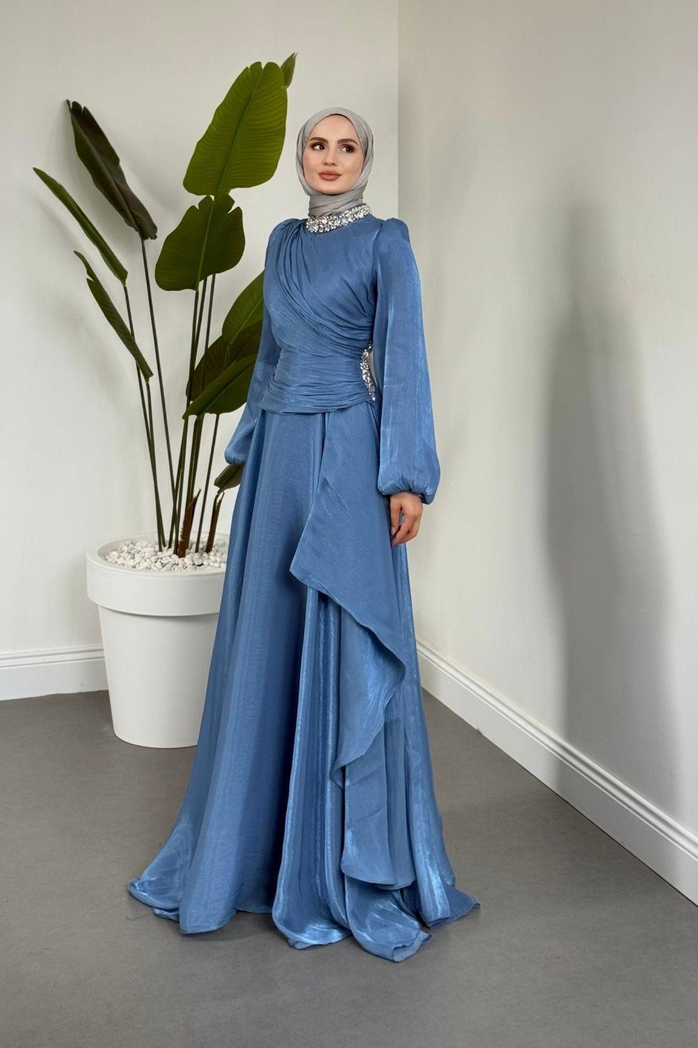 Kylea Yandan Taşlı Jan Jan Abiye Mavi