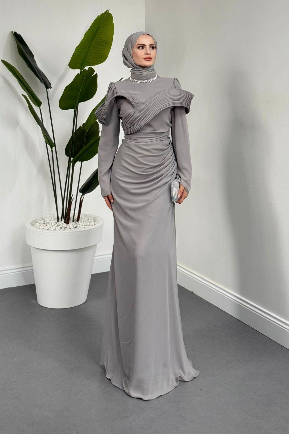 Lyra Pelerinli Balık Abiye Gri (4783)
