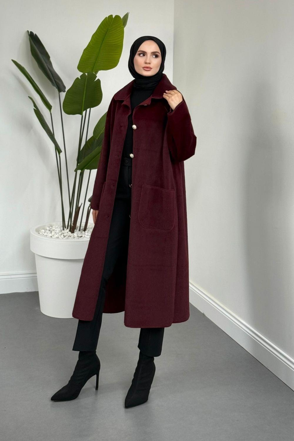 • Kalıp: Rahat, uzun kesim – her kombine uyum sağlar • Kumaş: Yumuşak dokulu, sıcak tutan kaliteli kaşe • Cep: Ön kısımda kullanışlı geniş cepler • Kombin: Siyah ince topuklu çizmeler ve siyah şal ile tamamlanarak minimalist ama güçlü bir stil oluşturuyor.