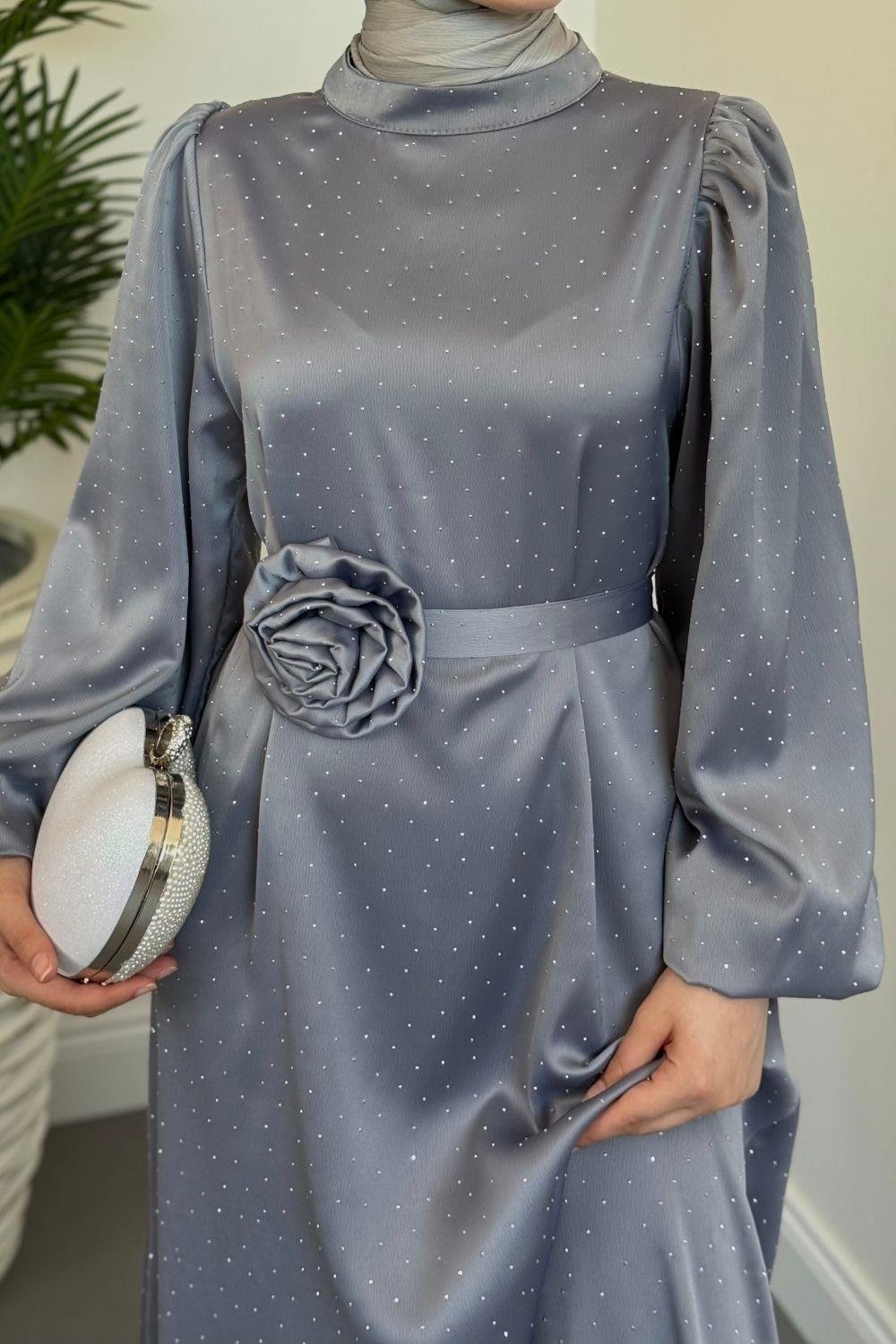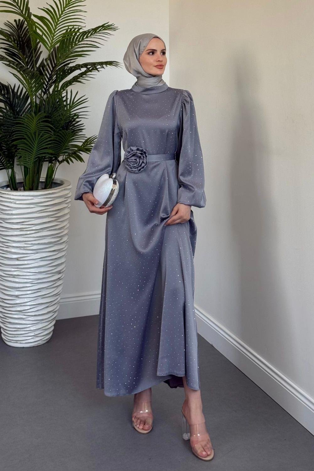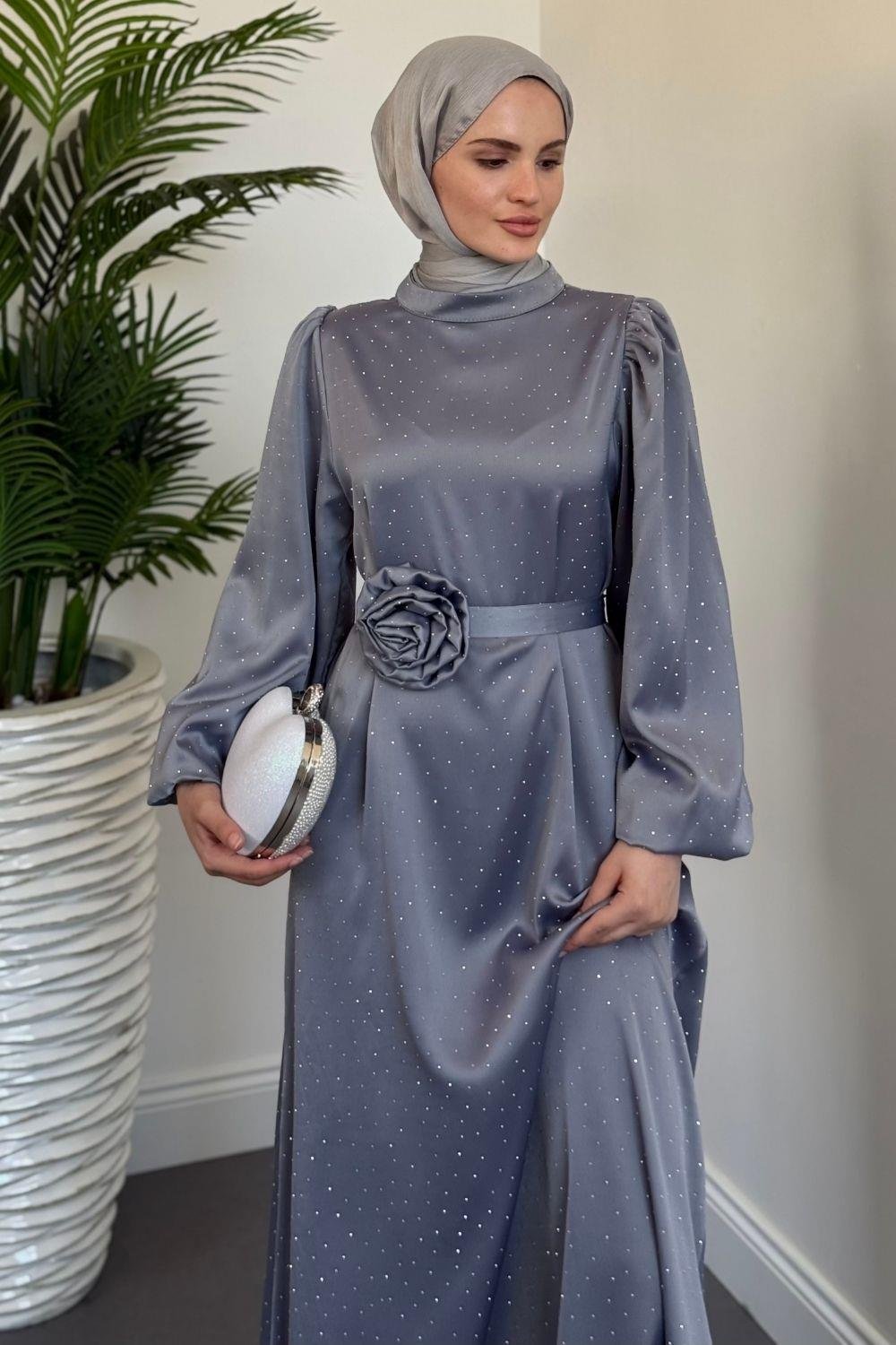 Kumaş Bilgisi: Taşlı Saten- Parlak ve zarif bir yapıya sahip, şıklığı ön plana çıkarır.