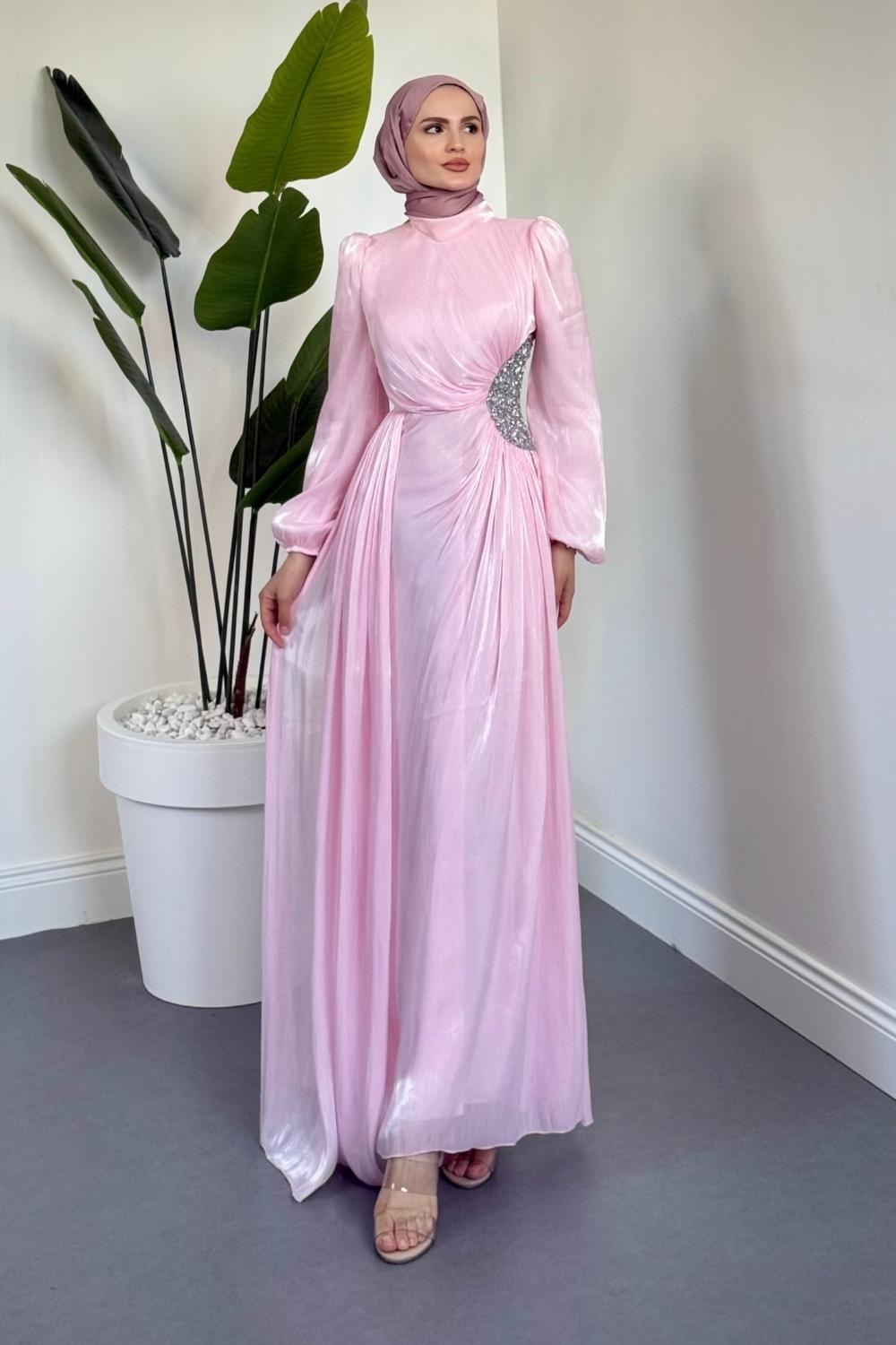 Nola Yanı Taşlı Jan Jan Abiye Şeker Pembesi