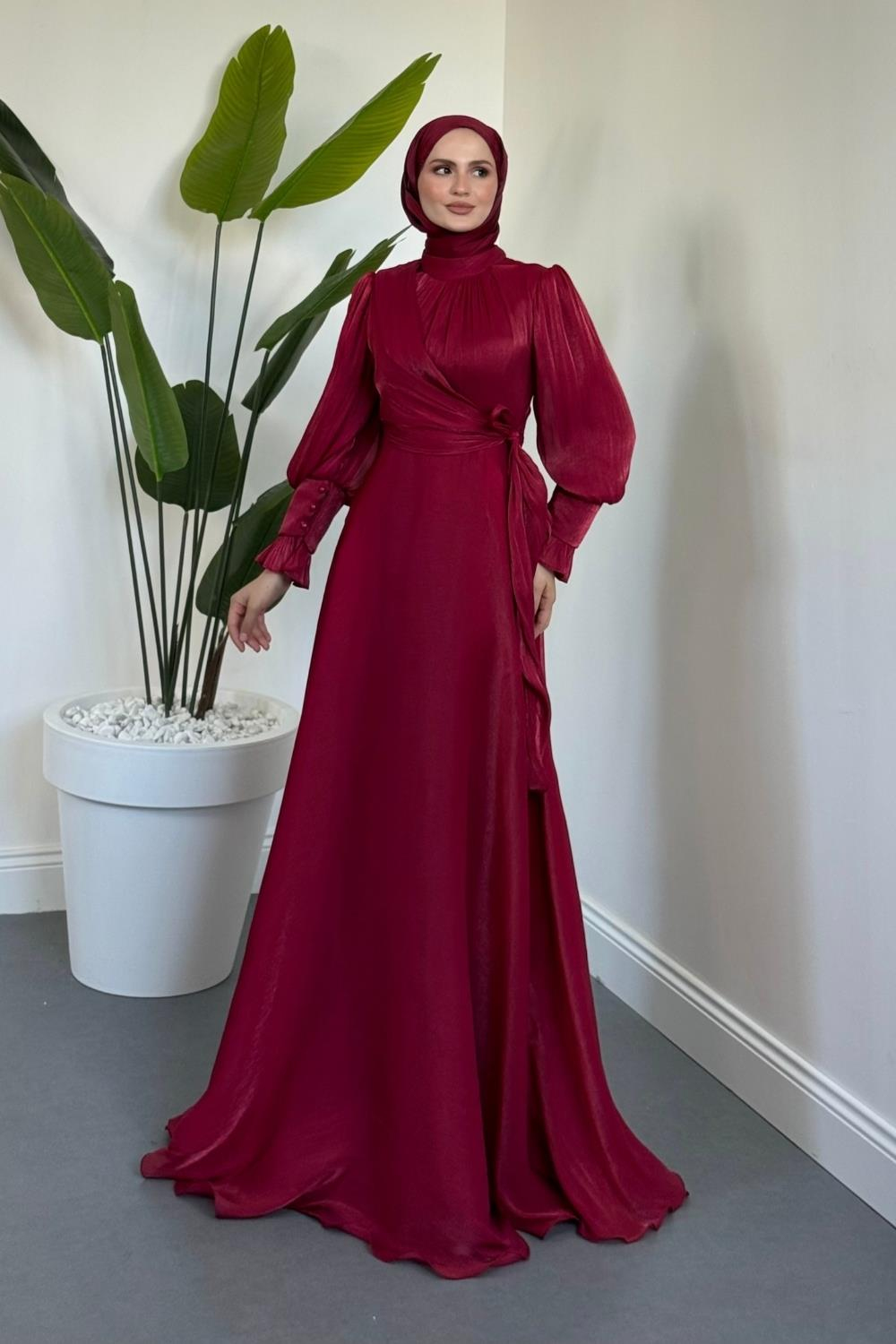 Rovena Yandan Bağlamalı Abiye Bordo