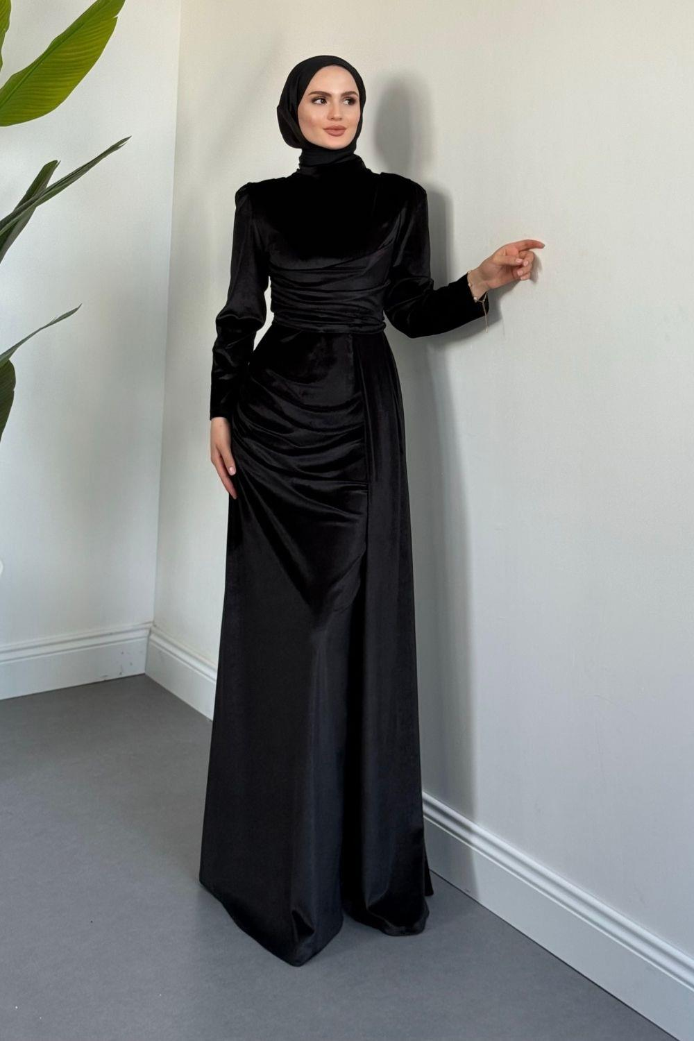 Samy Kadife Kumaş Balık Elbise Siyah (8817)