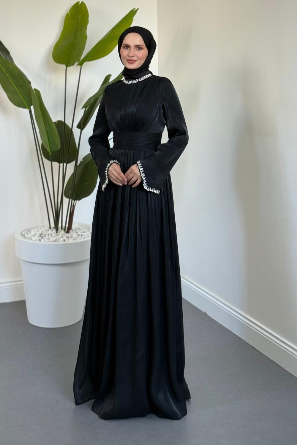 Saoris Boynu Kolu Taşlı Jan Jan Abiye Siyah (2638)
