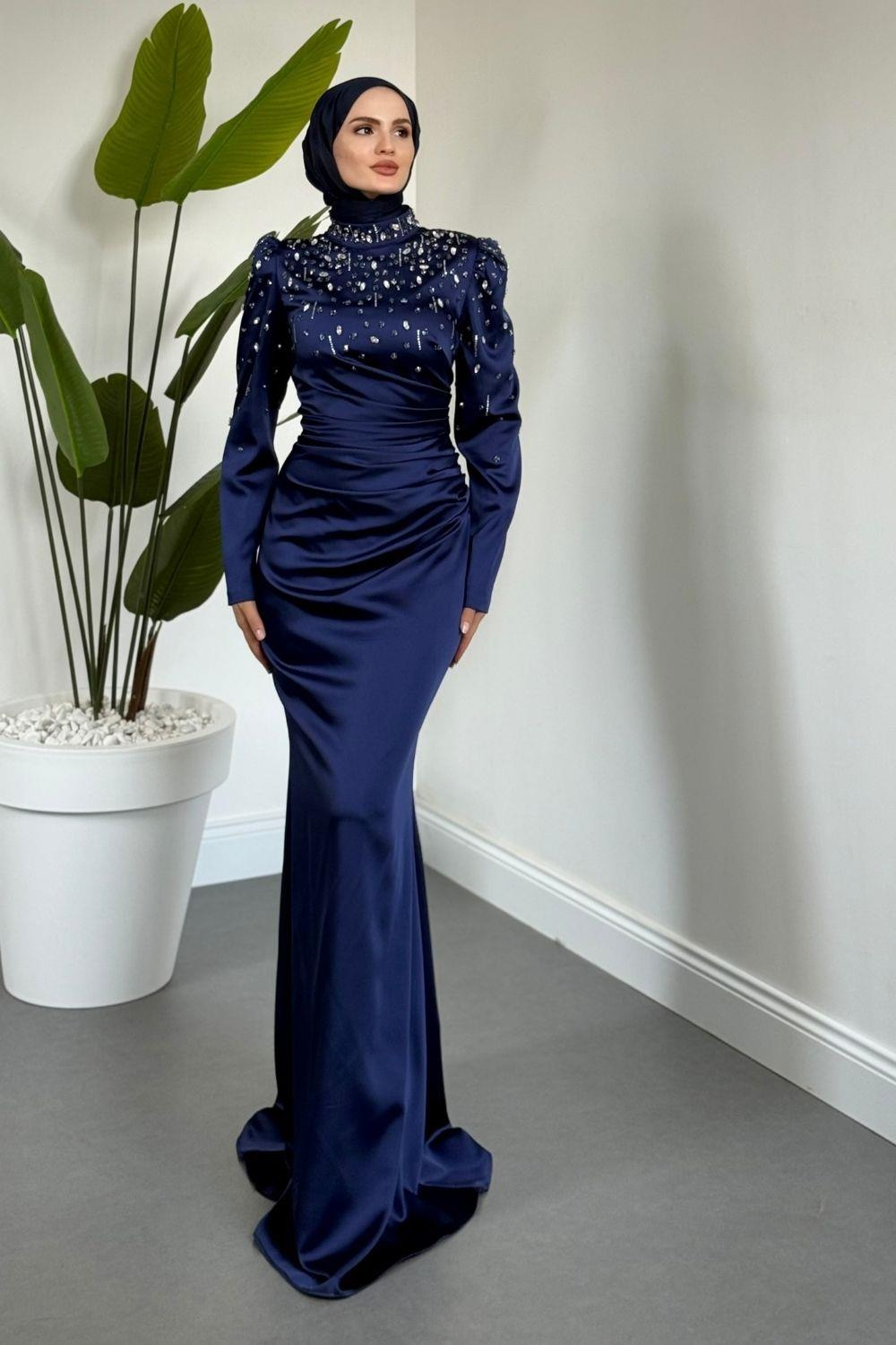Wanda Saten Taşlı Balık Abiye Lacivert (2622)